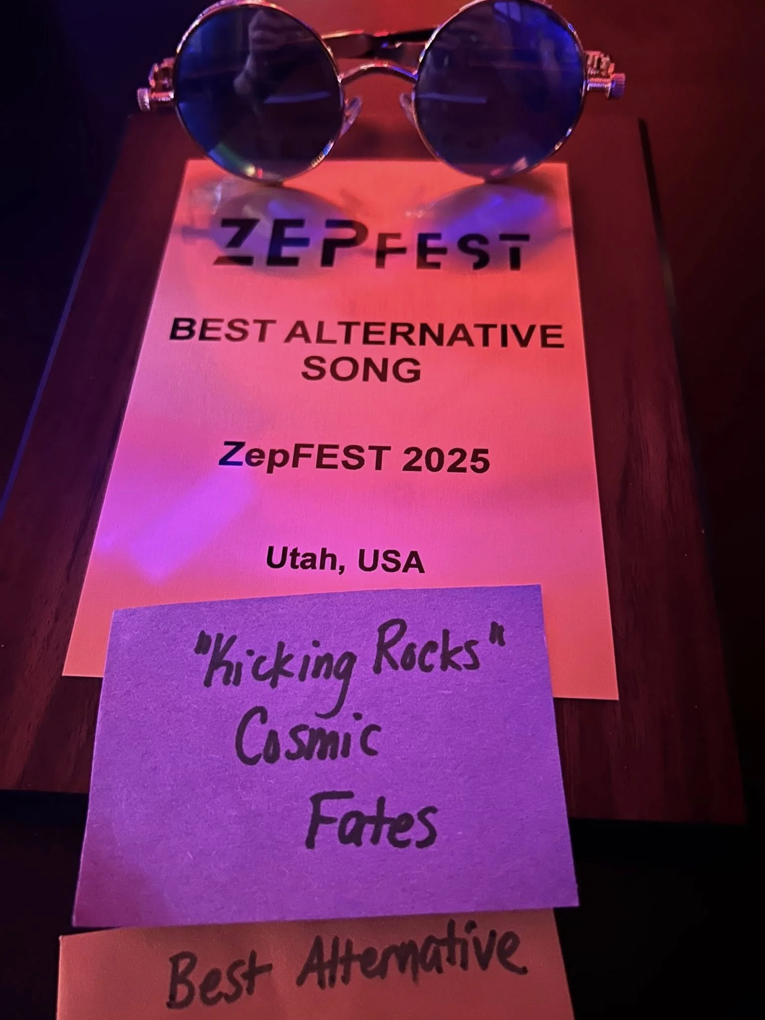 We're absolutely thrilled to share some incredible news with all of you who have supported us on this journey. This past Sunday, September 14th, our song "Kicking Rocks" was awarded "Best Alternative Rock Song of the Year" at the prestigious Zepstone International Film and Music Festival (ZepFEST 2025)!